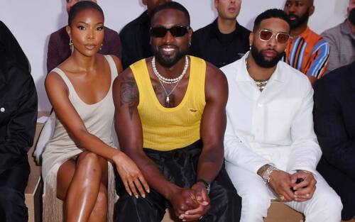 A BORDO PASSERELLA | La coppia Wade-Union in compagnia di un altro grande dello sport USA, la superstar del football USA Odell Beckham Jr.