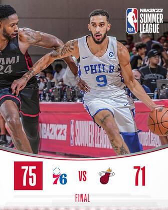 PHILADELPHIA 76ERS-MIAMI HEAT 75-71 | Successo in volata per Philadelphia, che rischia di complicarsi la vita nel finale e batte Miami grazie ai 16 punti di Queen e ai 12 con 10 rimbalzi di Ellison. Non bastano agli Heat invece i 50 punti in combinata del trio Javonte Smart (20 con 8/26 al tiro), Orlando Robinson (13 e 10 rimbalzi) e Haywood Highsmith (17 con 6/13 dal campo)