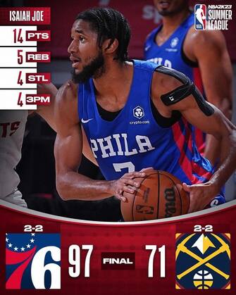 DENVER NUGGETS-PHILADELPHIA 76ERS 71-97 | Esce dalla panchina dei Sixers Grant Riller e segna 18 punti in 18 minuti, top scorer dell'incontro, davanti ai 17 di un Trevelin Queen ancora una volta sugli scudi. In casa Nuggets l'unico giocatore in doppia cifra è il rookie Christian Braun a quota 11, con anche 6 assist, 6 rimbalzi e 4 recuperi mentre si ferma a 3 punti in 18 minuti l'altra matricola Ismael Kamagate