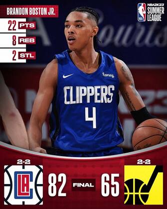 UTAH JAZZ-L.A. CLIPPERS 65-82 | Ancora una volta è Brandon Boston a mettersi in mostra in casa Clippers, finendo con 22 punti, 8 rimbalzi e 8/14 al tiro. Bene anche Jay Scrubb a quota 14, sono invece solo due - Leandro Bolmaro (19) e Johnny Juzang (14) - i giocatori in doppia cifra per Utah