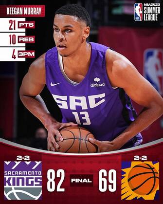 PHOENIX SUNS-SACRAMENTO KINGS 69-82 | Due doppie doppie firmate dal solito Keegan Murray (21 punti e 10 rimbalzi con 8/14 al tiro e 4 triple a segno) e dal centro portoghese Neemias Queta (15+10 con 6/6 al tiro) firmano la vittoria dei Kings sui Suns, che hanno una serata storta da Louis King (solo 3/11 al tiro) e 13 punti da Ish Wainright