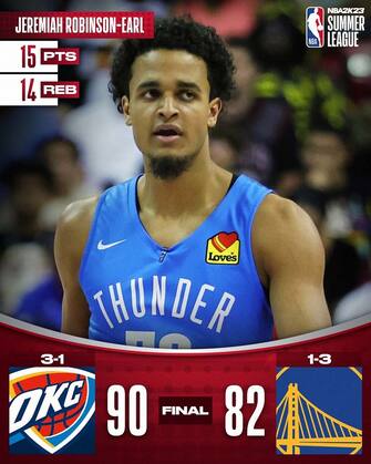 GOLDEN STATE WARRIORS-OKLAHOMA CITY THUNDER 82-90 | I Thunder mandano sei giocatori in doppia cifra. La coppia di matricole Jaylin e Jalen Williams chiude con 9 e 10 punti rispettivamente, il migliore è Jeremiah Robinson-Earl in doppia doppia con 15 punti e 14 rimbalzi. Bene per gli Warriors James Wiseman, autore di 14 punti e 7 rimbalzi in soli 20 minuti, mentre Jonathan Kuninga chiude a quota 16 ma solo con 5/15 al tiro