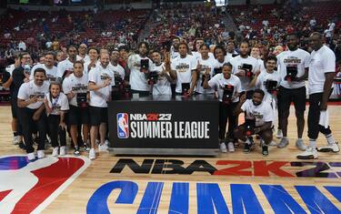 Simpatico siparietto a margine della vittoria a Las Vegas dei Portland Trail Blazers. Trendon Watford, appena premiato MVP della gara di finale contro i New York Knicks, da bravo "soldato" appena rientrato negli spogliatoi fa partire la videochiamata al capitano e superstar della squadra, Damian Lillard. Watford lascia che a parlare siano le immagini, e senza dire niente al suo n°0 inquadra il titolo di MVP della finale: è allora che Lillard - evidentemente tutt'altro che preoccupato dell'esito della partita - capisce tutto. "Oh, avete vinto? Avete vinto la Summer League?", chiede quasi incredulo. Poi, davanti alla conferma che gli arriva dal compagno, annuncia il risultato agli altri amici con lui in piscina, affacendati a divertirsi più che a pensare alla partita: si vede al suo fianco la fidanzata Kay’La Hanson (con cui ha tre figli) e poi Lillard inquadra un ospite speciale.