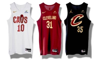 TRIPLETTA CAVS | Tre nuove maglie, tutte nuove: le versioni Association (bianca), Icon (color vinaccia) e Statement (nera) sono state interamente ripensate dal direttore creativo dei Cavs Daniel Arsham, riprendendo un altro colore chiave dell'identità delle squadre del recente passato: l'oro