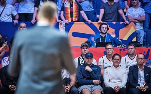 Tutti i membri più importanti dei Dallas Mavericks, dal proprietario Mark Cuban all’allenatore Jason Kidd fino ai dirigenti Nico Harrison, Michael Finley e infine Luka Doncic (pochi minuti dopo aver battuto la Lituania su quello stesso campo), erano presenti a Colonia per il ritiro della maglia numero 14 della nazionale tedesca di Dirk Nowitzki