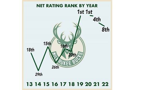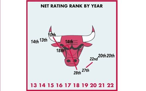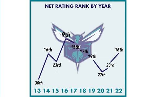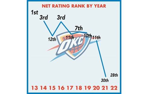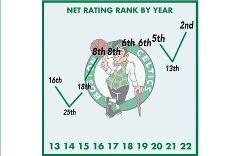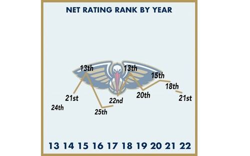 Non è un indice statistico perfetto (non esiste l'indice statistico perfetto) ma è quello che forse più si avvicina a riflettere il reale valore di una squadra. Il net rating è la differenza tra l'efficienza offensiva (punti realizzati per 100 possessi) e quella difensiva (punti subiti per 100 possessi) di una squadra, e il suo andamento analizzato nell'ultimo decennio dal sito "Real GM" fotografa gli equilibri di forza nella lega franchigia per franchigia