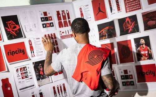 IL PROCESSO CREATIVO | Gli input che arrivano dai designer dei Blazers, il feedback preziosissimo da parte della loro superstar. "Cosa faresti qui?". "Proviamo questo": nasce anche così il nuovo look di una squadra