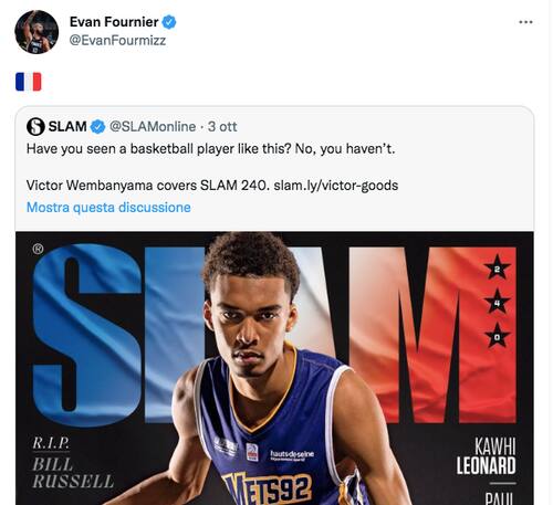 EVAN FOURNIER | Il giocatore francese dei Knicks invece ha ripreso la copertina di Slam di qualche giorno fa che ritrae proprio Wembanyama e lo racconta - giustamente - come la prossima novità pronta a travolgere tutto e tutti in NBA