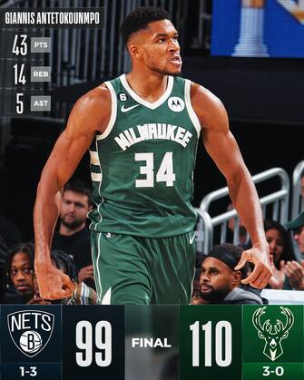 Protagonista indiscusso di una partita rivoltata come un calzino è Giannis Antetokounmpo - autore di 43 punti, 14 rimbalzi e 5 assist; ben 34 punti arrivano nella ripresa, quando più conta per Milwaukee che resta imbattuta e si prende la terza vittoria in fila anche grazie ai 20 punti in uscita dalla panchina di Bobby Portis (con 11 rimbalzi) e ai 15 realizzati da Jrue Holiday, nonostante una serata modesta al tiro - 5/18 complessivo, con 1/6 dall’arco