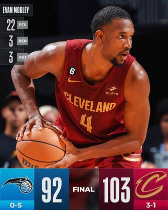 ORLANDO MAGIC-CLEVELAND CAVALIERS 103-92 | Terza vittoria in fila per i Cavaliers che battono con merito i Magic in casa guidati dai 22 punti (massimo in stagione) di Evan Mobley, a cui si aggiunge la doppia doppia da 18+16 di Jarrett Allen e i 14 punti e 8 assist di Donovan Mitchell. Cleveland resta sempre avanti nel punteggio nel secondo tempo, senza sentire troppo il peso dell’assenza di Darius Garland - tornato ad allenarsi in squadra dopo l’infortunio all’occhio nel match d’esordio