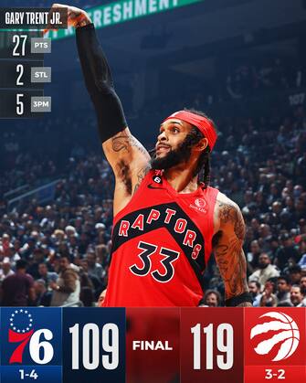 TORONTO RAPTORS-PHILADELPHIA 76ERS 119-109 | I Raptors si prendono una piccola rivincita dagli scorsi playoff, infliggendo ai Sixers la quarta sconfitta su cinque partite di questo difficile inizio di stagione. I canadesi possono fare quello che vogliono in attacco: Gary Trent Jr. ha firma il suo massimo stagionale con 27 punti, Pascal Siakam aggiunge 13 assist (massimo in carriera) ai suoi soliti 20 punti e i Raptors realizza 16 triple su 37 tentativi, anche questo il miglior dato della stagione