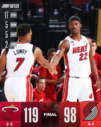 PORTLAND TRAIL BLAZERS-MIAMI HEAT 98-119 | Si ferma a quattro la striscia di vittorie dei Blazers, che subiscono la prima sconfitta stagionale e ricevono una notizia ancora peggiore. Damian Lillard (22 punti) infatti deve uscire dal campo a metà terzo quarto per un problema al polpaccio destro, e da lì in poi gli Heat non hanno nessun problema a dominare la sfida, toccando anche il +26 con sei giocatori in doppia cifra guidati dai 18 di Bam Adebayo e i 17 a testa di Jimmy Butler e Kyle Lowry