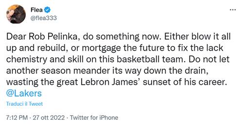 NBA, la (disastrosa) stagione dei Lakers attraverso gli imperdibili tweet di Flea