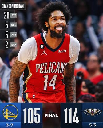 NEW ORLEANS PELICANS-GOLDEN STATE WARRIORS 114-105 | Kerr scende in campo con Looney in centro e poi nessun altro titolare (lasciati a riposare Curry, Thompson, Green e Wiggins), ma la "scossa" non riesce e Golden State incassa il 6° ko esterno su sei gare davanti a dei Pelicans ringalluzziti dal ritorno in campo di un ottimo Ingram (26 punti, 5 assist, 5 rimbalzi) e dal doppio ventello di McCollum e Nance Jr.. Zion Williamson chiude con 16 punti e 7/11 dal campo, New Orleans tira oltre il 50% dal campo e il 41% da tre