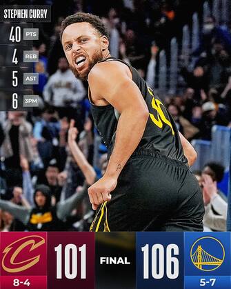 Steph Curry prende in mano la gara nell'ultimo quarto, quando la sfida con i Cavs si decide, e lo fa da autentico fenomeno, firmando sia la tripla del pareggio a quota 98 che quella decisiva per il +4 a 34 secondi dalla fine. Una prestazione da MVP che il n°30 degli Warriors chiude con 40 punti e 15/23 al tiro, compreso un super 6/11 dalla lunga distanza. Ci aggiunge anche 5 assist e 4 rimbalzi in una serata in cui (incredibile per lui) sbaglia due liberi sui sei tentati