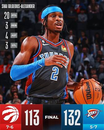 OKLAHOMA CITY THUNDER-TORONTO RAPTORS 132-113 | Il giovane roster dei Thunder è tutto da scoprire e nella sfida contro Toronto a mettersi in luce è Eugene Omoruyi che tira con 8/10 dal campo e firma il suo massimo in carriera a quota 22 punti, mentre 20 li aggiunge il solito Shai Gilgeous-Alexander. Sono 20, con 12 rimbalzi, dalla panchina anche i punti di Chris Boucher, il migliore per i canadesi, che hanno 15 punti a testa da VanVleet e Barnes, dovendo sempre fare a meno di Siakam e Achiuwa. Thunder con un record positivo in casa, 4-3