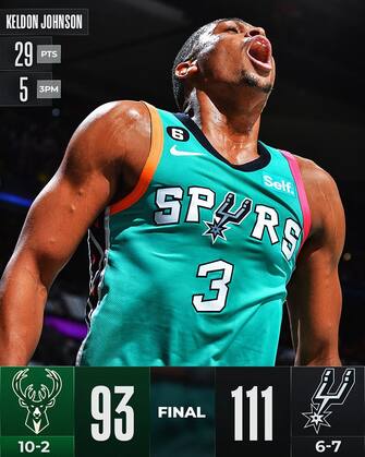 SAN ANTONIO SPURS-MILWAUKEE BUCKS 111-93 | I Bucks "B" (senza Antetokounmpo, Holiday, Connaughton e Allen, oltre ai soliti Middleton e Ingles) non oppongono troppa resistenza agli Spurs, che nonostante le 19 palle perse tornano alla vittoria dopo 5 ko consecutivi, guidati dai 29 punti con 5 triple a segno di Keldon Johnson. Indicativo della differenza di energia in campo il dato dei punti in contropiede a favore dei texani: 21-0. Decisivo il quarto quarto, vinto 28-17 dai padroni di casa, che tengono Milwaukee al minimo stagionale al tiro (solo il 33%)