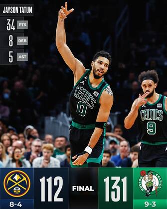 A interrompere la striscia di quattro successi Nuggets invece ci ha pensato Jayson Tatum, autore di 34 punti con 11/21 al tiro, 8 rimbalzi, 5 assist e +18 di plus/minus, mentre sono 25 con 11/15 dal campo per Jaylen Brown - anche lui uomo tuttofare sul parquet come dimostrano gli otto rimbalzi e gli otto assist. A completare il produttivo quintetto Celtics è Al Horford: 21 punti, 7 rimbalzi e un cruciale 6/8 dall’arco che messo alla corde la difesa di Denver. Boston sale così al 2° posto in solitaria a Est