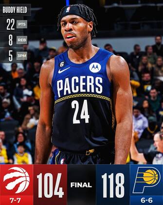 INDIANA PACERS-TORONTO RAPTORS 118-104 | Vittoria meritata dei Pacers, che approfittano delle assenze di Siakam e VanVleet per dimostrare maggiore energie nell’ultimo quarto, piazzare il parziale decisivo (36-14) e riportare così il record al 50% di successi (6-6). Al resto pensano i 22 punti con 5/11 dall’arco di Buddy Hield, i 19 e 10 rimbalzi di Myles Turner (con i Lakers spettatori interessati) e guidati da un impreciso Tyrese Haliburton che a fronte di un modesto 3/14 dal campo, si concede ben 15 assist e +26 di plus/minus