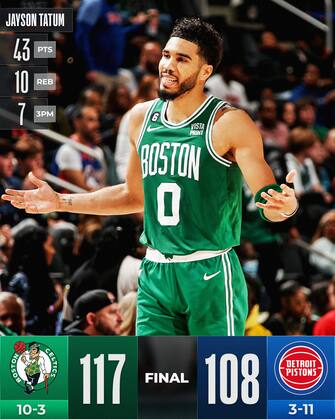 Il protagonista della serata però si chiama Jayson Tatum, che firma una doppia doppia da 43 punti e 10 rimbalzi che lo fa entrare nella storia biancoverde. Si tratta della 13^ gara in carriera a oltre 40 punti (passa Havlicek, solo Bird e Pierce hanno fatto meglio di lui in casa Celtics) e della 4^ a cui ai 40 punti aggiunge almeno 10 rimbalzi (supera Sam Jones, resta dietro Bird, Heinsohn e Pierce). Il n°0 di Boston tira 14/28 e manda a bersaglio 7 delle 15 triple che si prende
