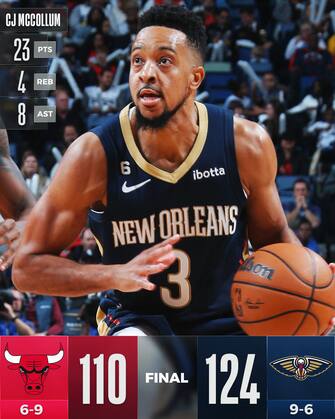 NEW ORLEANS PELICANS-CHICAGO BULLS 124-110 | Secondo successo in fila senza Zion Williamson per i Pelicans, che sfruttano un quintetto tutto in doppia cifra guidato dai 23 punti di CJ McCollum e i 22 di Jonas Valanciunas per dominare i Bulls lungo tutto il secondo tempo, toccando anche il +26. Trey Murphy firma la prima doppia doppia della carriera con 19 punti e 10 rimbalzi segnando 5 delle 17 triple di squadra dei padroni di casa, mentre ai Bulls non bastano i 28 di DeMar DeRozan e i 25 di Zach LaVine per evitare il terzo ko in fila