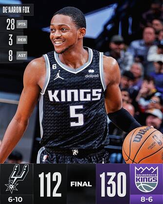 SACRAMENTO KINGS-SAN ANTONIO SPURS 130-112 | Continua il momento magico dei Kings, al 5° successo in fila (l'ottavo nelle ultime dieci), trascinati da un Fox da 28 punti con 11/15 al tiro ma con un sorprendente Malik Monk che dalla panchina ne segna 26 con 11/19 e 4 triple a segno. Sacramento di squadra centra il fatidico 50/40/90, sfiorando il 58% dal campo, con il 40% esatto da tre e con il 91.7% dalla lunetta (22/24). San Antonio paga le 18 palle perse: non bastano i 29 punti con quattro triple di Devin Vasell
