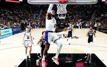 A un minuto dalla fine del primo tempo, gli Spurs perdono palla, LeBron la recupera e si scatena il contropiede Lakers. Palla a Westbrook che la riceve in salto e senza rimettere i piedi a terra la alza immediatamente per il suo n°6, che anche vicino ai 38 anni dimostra di sapere ancora andare un metro sopra il ferro per l'affondata a una mano