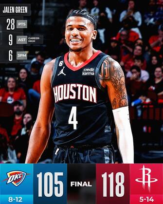 HOUSTON ROCKETS-OKLAHOMA CITY THUNDER 118-105 | Due giovani talenti di Houston firmano il loro career-high e guidano alla vittoria i Rockets: massimo di sempre i 9 assist (con 28 punti) di Jalen Green, così come i 18 rimbalzi (con 21 punti e 7 assist) di uno straordinario Alperen Sengun. Per la prima volta in stagione i texani vincono due gare in fila (dopo il successo con Atlanta) e ringraziano anche la matricola Jabari Smith, in doppia doppia con 15 punti e 13 rimbalzi. Decisivo un secondo quarto da 42-22 con 7/11 dall'arco per i padroni di casa