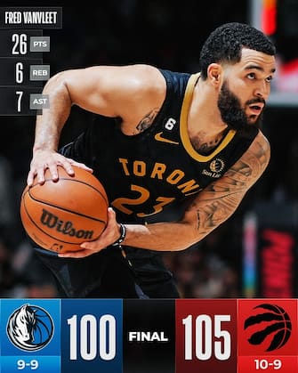 TORONTO RAPTORS-DALLAS MAVERICKS 105-100 | La coppia VanVleet-Anunoby (ciascuno autore di 26 punti) trascina Toronto al settimo successo in nove gare casalinghe, arrivato anche grazie all'ottima prova dalla panchina di Chris Boucher, al suo massimo stagionale con 22 punti cui aggiunge 13 rimbalzi. Ma Toronto forse fa la cosa migliore nel contenere Luka Doncic a "soli" 24 punti, 9 assist e 7 rimbalzi, con i texani che incassano così il terzo ko consecutivo (e il 6° su 7 lontani da Dallas)