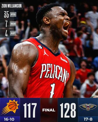 Zion Williamson firma una prestazione da 35 punti - nuovo massimo stagionale - chiudendo con 13/17 al tiro, 7 rimbalzi e +30 di plus/minus. Incontenibile a dir poco, tanto da mettere il punto esclamativo sulla gara volando a inchiodare una schiacciata clamorosa con giro a 360° ed esultanza con il pubblico che fa scoppiare il parapiglia sul parquet e indignare i giocatori Suns: "Non è nel mio stile, ma capite, loro sono quelli che hanno mandato a casa i Pelicans l’anno scorso ai playoff…". Il guanto per il rematch domenica (live su Sky) è lanciato