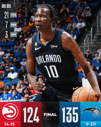 ORLANDO MAGIC-ATLANTA HAWKS 135-124 | Basta e avanza un primo quarto da record di franchigia agli Orlando Magic per prendere la testa del match contro Atlanta e non voltarsi più indietro, abili a conquistare la quarta vittoria in fila approfittando della carente e deficitaria difesa Hawks che arranca contro una prima frazione da 50 punti - mai così tanti in 12 minuti per la squadra della Florida. Del tutto inutili quindi i 19 punti e 16 assist di Trae Young, mentre sono 25 quelli segnati da De’Andre Hunter
