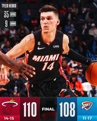 Serata speciale invece per Herro che chiude con nove triple a bersaglio - mai così tante nella sua carriera - e 35 punti complessivi, in una serata da 24 canestri pesanti a bersaglio complessivi degli Heat, ancora senza Jimmy Butler tenuto a riposo a causa dei continui fastidi al ginocchio destro. Doppia doppia da 15 e 13 rimbalzi per Bam Adebayo, mentre sono 14 i punti in uscita dalla panchina per Duncan Robinson che tira 4/8 dall’arco, provando a ritagliarsi nuovamente un ruolo importante nella rotazione della squadra della Florida