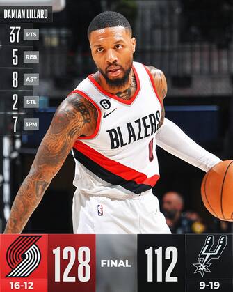 Alla sirena finale sono 37 punti con 7/14 dall’arco per Damian Lillard, che aggiunge anche cinque rimbalzi, otto assist e un paio di recuperi, in un mese di dicembre straordinario che finora lo ha portato a segnare oltre 34 punti di media. San Antonio non riesce mai a riportarsi a contatto, in un match in cui Anfernee Simons aggiunge 23 punti e 5/9 dall’arco, mentre sono 15 con sette rimbalzi e sei assist per Jusuf Nurkic: i Blazers a Ovest fanno sul serio nell’andare a caccia di un posto ai playoff
