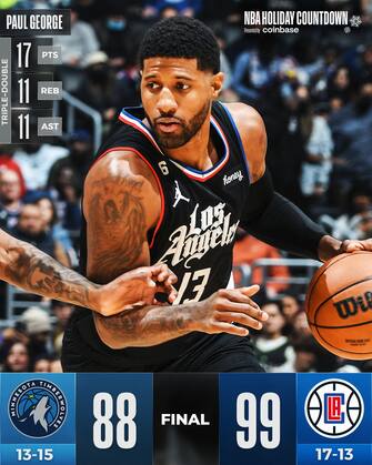 Con le squadre appaiate a quota 71 a inizio del quarto periodo, è un parziale di 25-9 a decidere la sfida grazie alle triple di Luke Kennard (16 punti) e Nicolas Batum (13), a cui si sono poi aggiunti quattro punti di un Paul George in tripla doppia (17 punti, 11 rimbalzi e 11 assist). Il miglior realizzatore per i losangeleni è però Kawhi Leonard con 19, dominando sotto canestro (62-48 a rimbalzo) nonostante i 19 di Anthony Edwards e gli 11+13 di Rudy Gobert, infliggendo ai T’Wolves il terzo ko in fila