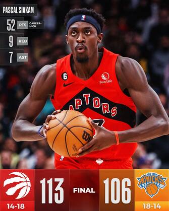 Il protagonista assoluto della serata è il già citato Pascal Siakam, che si regala una prestazione da sogno al Madison Square Garden - autore di 52 punti, nuovo massimo in carriera, con 17/25 al tiro, 16/18 ai liberi, nove rimbalzi e sette assist, in parte limitato nel finale dalla difesa Knicks tutta collassata su di lui negli ultimi 12 minuti di gioco. Toronto vince così la prima gara in trasferta dal 14 novembre nonostante uno Scottie Barnes che fatica a trovare ritmo: 1/10 al tiro e due punti con -16 di plus/minus per il rookie dell’anno della scorsa stagione