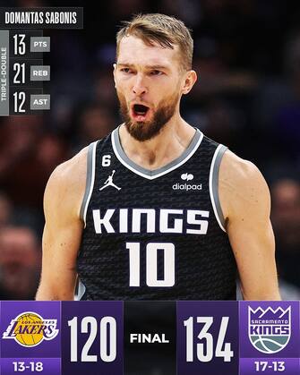 SACRAMENTO KINGS-LOS ANGELES LAKERS 134-120 | I due parziali centrali, quelli di secondo e terzo quarto, sono decisivi: i Kings fanno 82-60 e chiudono i conti contro L.A., anche in virtù di una grande prestazione del loro quintetto base. Sacramento ha 4/5 dei titolari con almeno 20 punti, dai 26 (con 9/14) di Huerter, ai 20 di Barnes, passando per i 23 con 6 triple del rookie Keegan Murray e ai 22 di Fox
