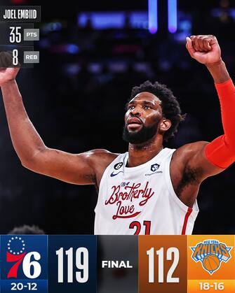 NEW YORK KNICKS-PHILADELPHIA 76ERS 112-119 | I Sixers festeggiano al meglio il Natale andando a sbancare il Madison Square Garden nel matinée che apre il Christmas Day. I Sixers ci mettono un po’ a entrare in partita andando sotto anche di 14 nel primo tempo, ma salgono di colpi con l’andare del match e spaccano in due la partita con un parziale da 21-4 nel quarto periodo, spinto non solo dalle giocate di Embiid e Harden, ma anche dalle triple di Georges Niang (16 punti con 4/9 da tre)