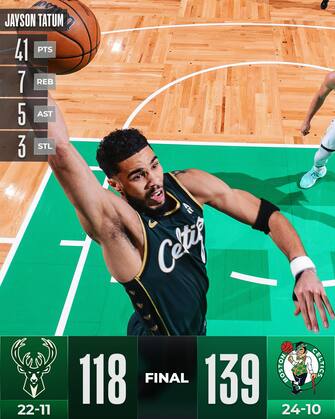 Jayson Tatum e Jaylen Brown infatti combinano per 70 punti, con il primo che ne mette 41 grazie a un terzo quarto di pura onnipotenza (20 punti) e il secondo che chiude i conti nel quarto periodo, nel quale segna 13 dei suoi 29 punti finali. Boston torna a segnare le sue triple (19/39 alla fine) e sfiora il 60% dal campo, trovando anche le doppie cifre di Derrick White (12), Grant Williams e Al Horford (11). Milwaukee perde ancora con una diretta concorrente dopo i ko contro Cleveland e Brooklyn, trovando la terza sconfitta in fila