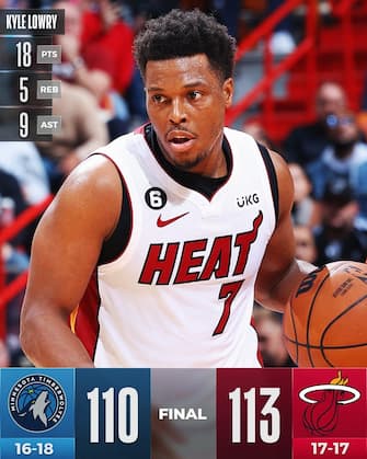 MIAMI HEAT-MINNESOTA TIMBERWOLVES 113-110 | Su 34 partite stagionali, ben 17 gare degli Heat sono state decise da un margine inferiore o uguale ai 5 punti, con Miami che ha portato a casa 11 di queste sfide, battendo anche i T’Wolves grazie ai 19 punti di Max Strus e ai 18 con nove assist di Kyle Lowry - senza far pesare troppo l’assenza degli infortunati Jimmy Butler e Bam Adebayo. Poco lucida Minnesota nella gestione del tentativo di pareggio, con Anthony Edwards che chiude con 29 punti alla guida di un quintetto tutto in doppia cifra