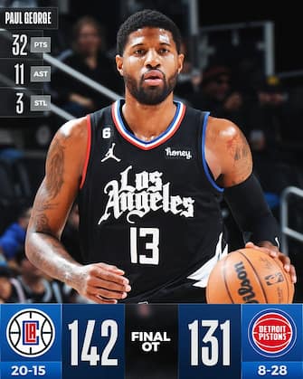 Alla sirena finale sono sette i giocatori in doppia cifra, guidati da un ottimo Paul George da 32 punti e 11 assist con 9/19 al tiro che fa al meglio le veci dell’assente Kawhi Leonard - che continua a fare entra/esci dal parquet per evitare rischi e recuperare al meglio dall’infortunio. Doppia doppia anche per Ivica Zubac che ne mette 12 con 15 rimbalzi e 4/5 dal campo, mentre sono 34 i punti combinati dal duo Kennard-Wall in uscita dalla panchina con otto triple complessive a referto