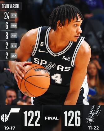 SAN ANTONIO SPURS-UTAH JAZZ 126-122 | Nonostante un quarto quarto da 40 punti e 7 punti segnati in 33 secondi nel finale, a Utah non riesce la rimonta su San Antonio, avanti di 11 a due minuti e mezzo dalla fine. Sono i due talenti giovani più premiati di casa Spurs a fare la differenza: ai 24 punti di Devin Vassell risponde Keldon Johnson con 21 e 9/14 al tiro. Bene anche dalla panchina il rookie Malaki Branham autore di 20 punti. La gara è iniziata con 40 minuti di ritardo per una presunta minaccia alla sicurezza del pubblico dell'AT&T Center