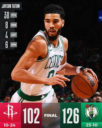 Jayson Tatum può fare quello che vuole contro la difesa dei Rockets, segnando a piacimento per chiudere con 38 punti, 8 rimbalzi e 4 assist in 34 minuti di gioco, realizzando 12 dei 25 tiri tentati (6/16 da tre) e tutti gli 8 tiri liberi a disposizione. “Cosa è cambiato con Stoudemire? Niente, solo che non c’era Joe a masticare la sua gomma a bordocampo” ha detto con una battuta il candidato MVP, che incredibilmente non è nemmeno stato il miglior realizzatore del match