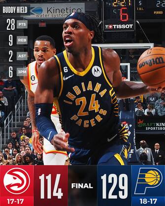 INDIANA PACERS-ATLANTA HAWKS 129-114 | Buddy Hield continua la sua ottima stagione nel tiro dalla lunga distanza e firma una prestazione da 28 punti con 6/7 dall’arco, rimpinguando il suo bottino da tre punti - ben 132 bersagli in regular season finora, nessuno ha fatto meglio - regalando così ai Pacers in importante successo contro Atlanta, merito anche dei 23 punti e 7 assist di Tyrese Haliburton. Dall’altra parte invece gli Hawks faticano a trovare la giusta consistenza: non bastano i 22 punti e 10 assist di Trae Young e 26 con 10 rimbalzi di John Collins