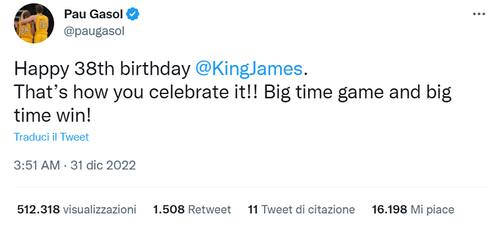 PAU GASOL | "Buon 38° compleanno: è così che si festeggia! Con una grande prestazione e una grande vittoria", commenta un ex Lakers come Pau Gasol