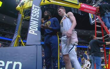 Per la seconda volta in una settimana, il canestro sul lato sinistro del campo dei Denver Nuggets si è piegato, provocando un ritardo all'inizio del quarto periodo contro i Cleveland Cavaliers. Si tratta dello stesso ferro che aveva provocato una sospensione di 35 minuti nella gara di lunedì scorso contro Boston, anche se questa volta gli inservienti ci hanno messo meno di 10 minuti ad aggiustarlo. "Non aizzatemi, non fa bene alla mia pressione" ha detto coach Michael Malone sull’accaduto