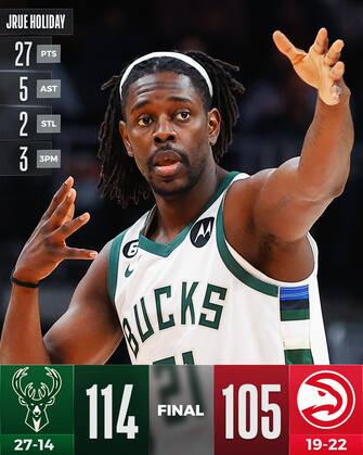 ATLANTA HAWKS-MILWAUKEE BUCKS 105-114 | Quarta vittoria nelle ultime cinque per i Bucks che si godono un Jrue Holiday da 27 punti, i 20 con 12 rimbalzi di Brook Lopez e la doppia doppia con 7 punti segnati - 18 rimbalzi e 10 assist - di Giannis Antetokounmpo. Atlanta, senza Trae Young e Clint Capela, recupera anche 24 lunghezze di svantaggio, ma si pianta negli ultimi minuti di gara incassando il 10-0 finale che decide la sfida, nonostante i 22 punti con 9/18 al tiro realizzati da Bogdan Bogdanovic in uscita dalla panchina
