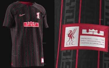 Il kit di maglie del Liverpool per la stagione 2022-23 si arricchisce di una quarta versione dedicata niente meno che a "King James": le prime immagini della divisa - che verrà indossata per la prima volta da Salah e compagni o già entro la fine di questo mese o a febbraio - sono trapelate sui social grazie a Footy Headlines (e presentate anche da @ismet1m00 e @FumlerRawk). Ecco uno sguardo in anteprima all'ultima collaborazione tra il Liverpool e LeBron, che del club inglese detiene alcune quote azionarie
