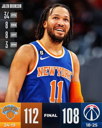 Il protagonista in casa Knicks è ancora Jalen Brunson, che oltre a segnare 34 punti mette anche i liberi decisivi negli ultimi 30 secondi per mantenere sempre due possessi di vantaggio nei confronti degli avversari. "Ha preso il controllo della partita, quest’anno merita l’All-Star Game" ha detto di lui Kyle Kuzma, incapace come tutti i suoi compagni di contenere la point guard di New York. Julius Randle ne mette 23 con 16 rimbalzi e Immanuel Quickley ne aggiunge 18 dalla panchina per New York che torna al sesto posto a Est