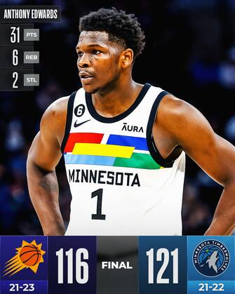 Merito del successo dei T’Wolves va soprattutto a Anthony Edwards, leader dei suoi con 31 punti insieme ai 17 di D’Angelo Russell, a cui si aggiungono i 16 di Taurean Prince e i 13 di Naz Reid. Sono 7 i punti di Edward nel parziale decisivo di 12-0 con cui Minnesota prende il controllo del match nel primo quarto senza più voltarsi indietro, permettendo ai Suns al massimo di rientrare fino al -6 negli ultimi minuti di partita complice il dominio in area dei padroni di casa (64-46) toccando anche il +24