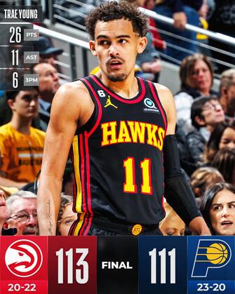 INDIANA PACERS-ATLANTA HAWKS 111-113 | John Collins è l’unico membro del quintetto di Atlanta sotto i 18 punti segnandone 8, ma è anche l’autore del tap-in decisivo a 7 decimi dalla fine per spezzare la parità e regalare la vittoria ad Atlanta. Gli ospiti hanno 6 triple a testa da Trae Young (26 punti e 11 assist) e De’Andre Hunter (25), oltre alla super doppia doppia di Onyeka Okongwu (18+20 con 4 stoppate), mentre ai Pacers non bastano i 26 di Bennedict Mathurin per sopperire alle assenze di Haliburton, Turner e Naismith